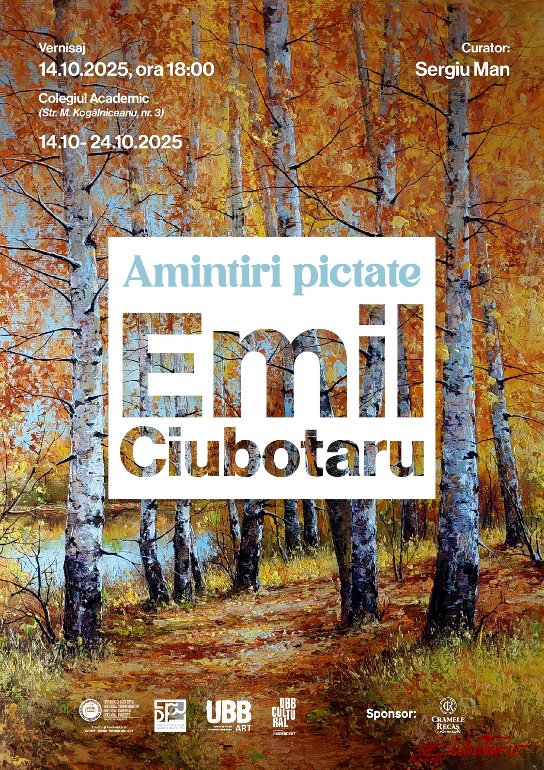 Universitatea Babeș-Bolyai prin Direcția Patrimoniu Cultural Universitar, vă invită la vernisajul expoziției realizată de artistul Emil Ciubotaru. Evenimentul este acompaniat de concerte și piese de teatru, ce se vor desfășura pe perioada expoziției în incinta Colegiului Academic.