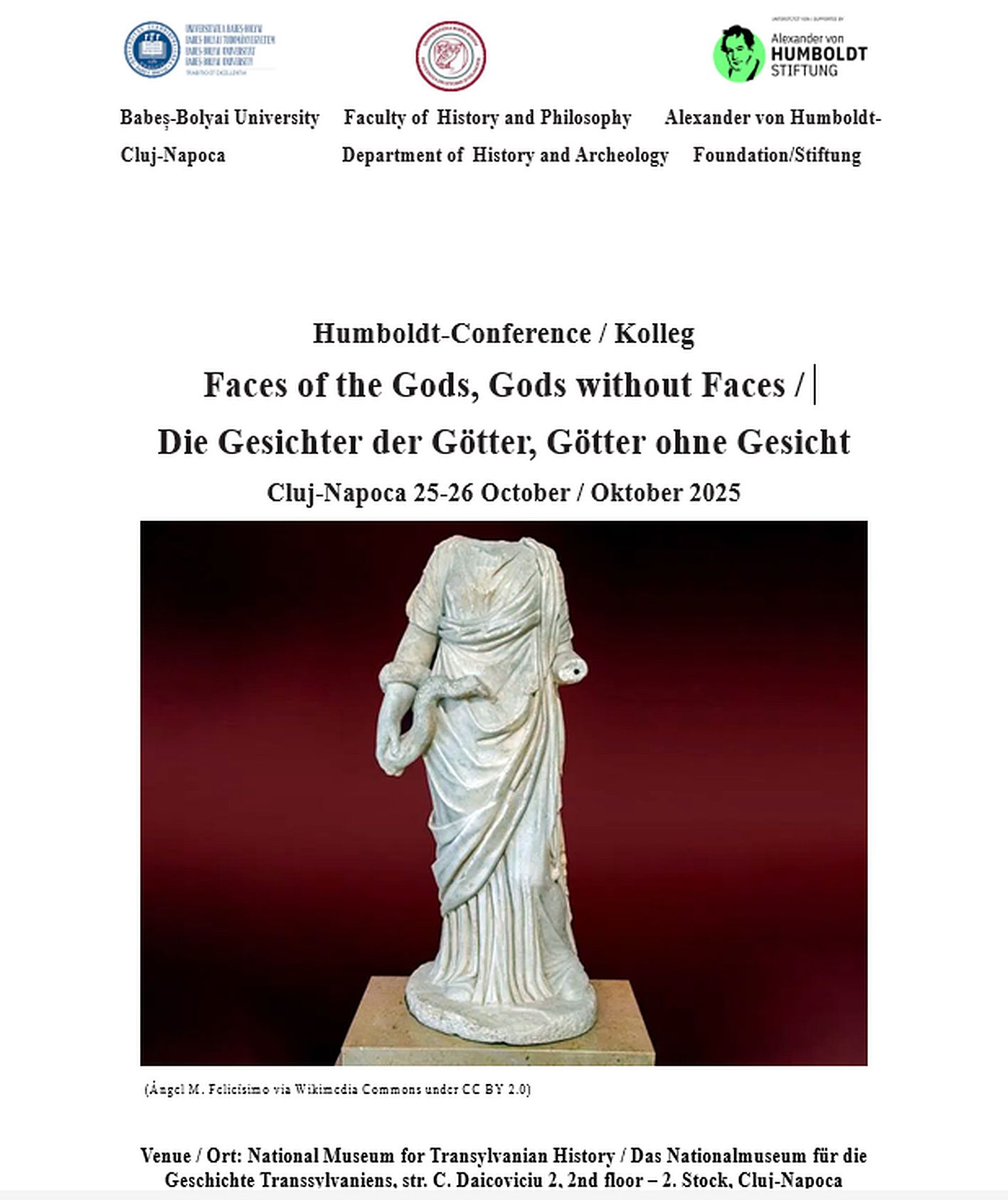 Facultatea de Istorie și Filosofie prin Departamentul de Istorie și Arheologie cu sprijinul Fundației Alexander von Humboldt, Bonn, Germania vă invită la colocviul internațional – Faces of the Gods, Gods without Faces.