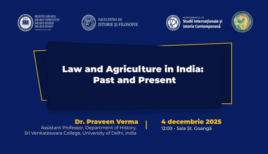 Departamentul de Studii Internaționale și Istorie Contemporană în colaborare cu Centrul Clujean pentru Studii Indiene vă invită la prelegerea susținută de Dr. Praveen Verma, Departamentul de Istorie al Sri Venkateswara College, University of Delhi, India.