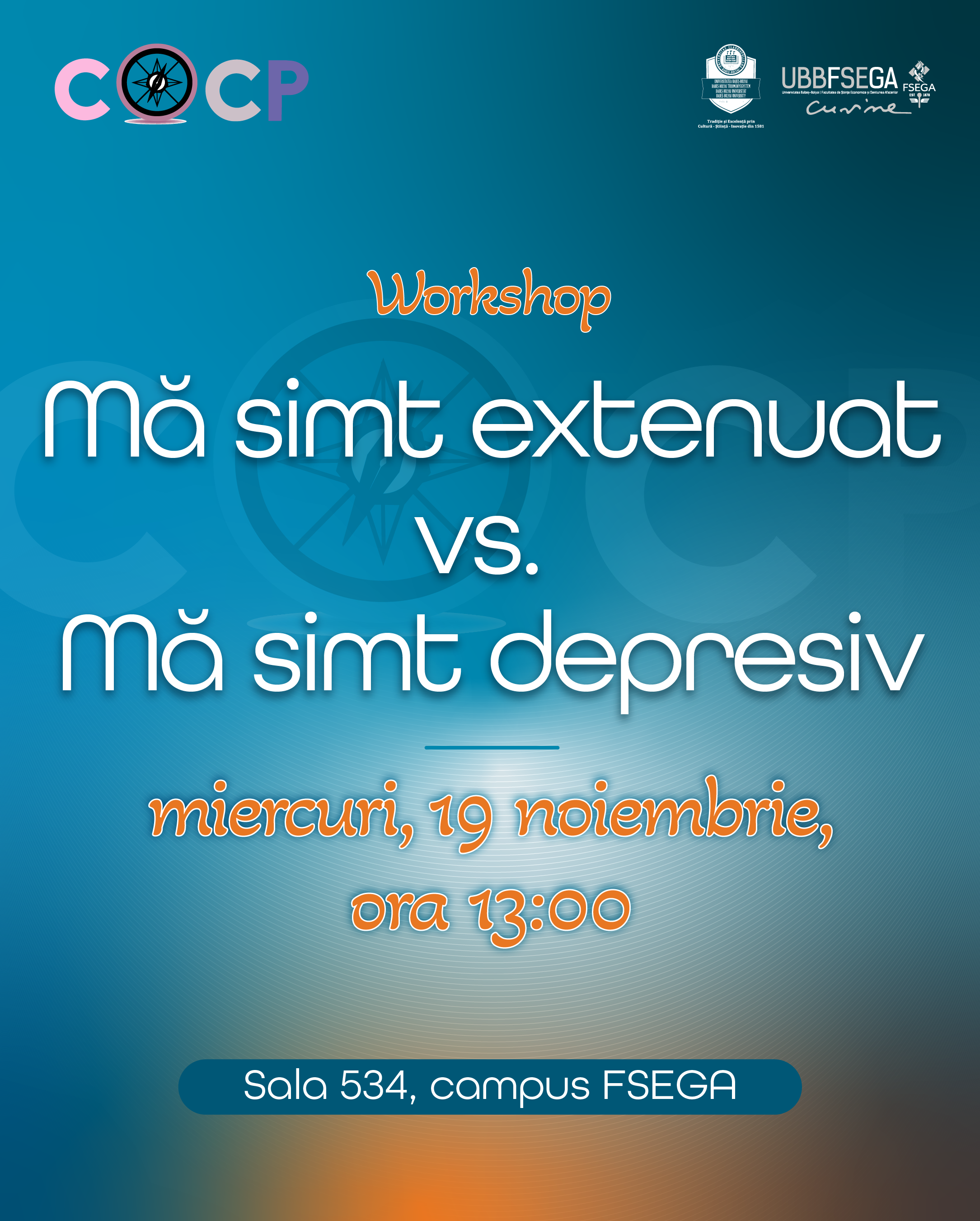 Facultatea de Științe Economice și Gestiunea Afacerilor prin Centrul de Orientare și Consiliere Profesională își invită studenții la workshopul – Mă simt extenuat vs. mă simt depresiv.