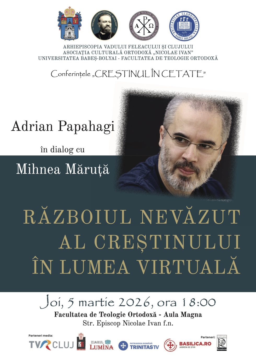 Facultatea de Teologie Ortodoxă vă invită la conferința – Războiul nevăzut al creștinismului în lumea virtuală.