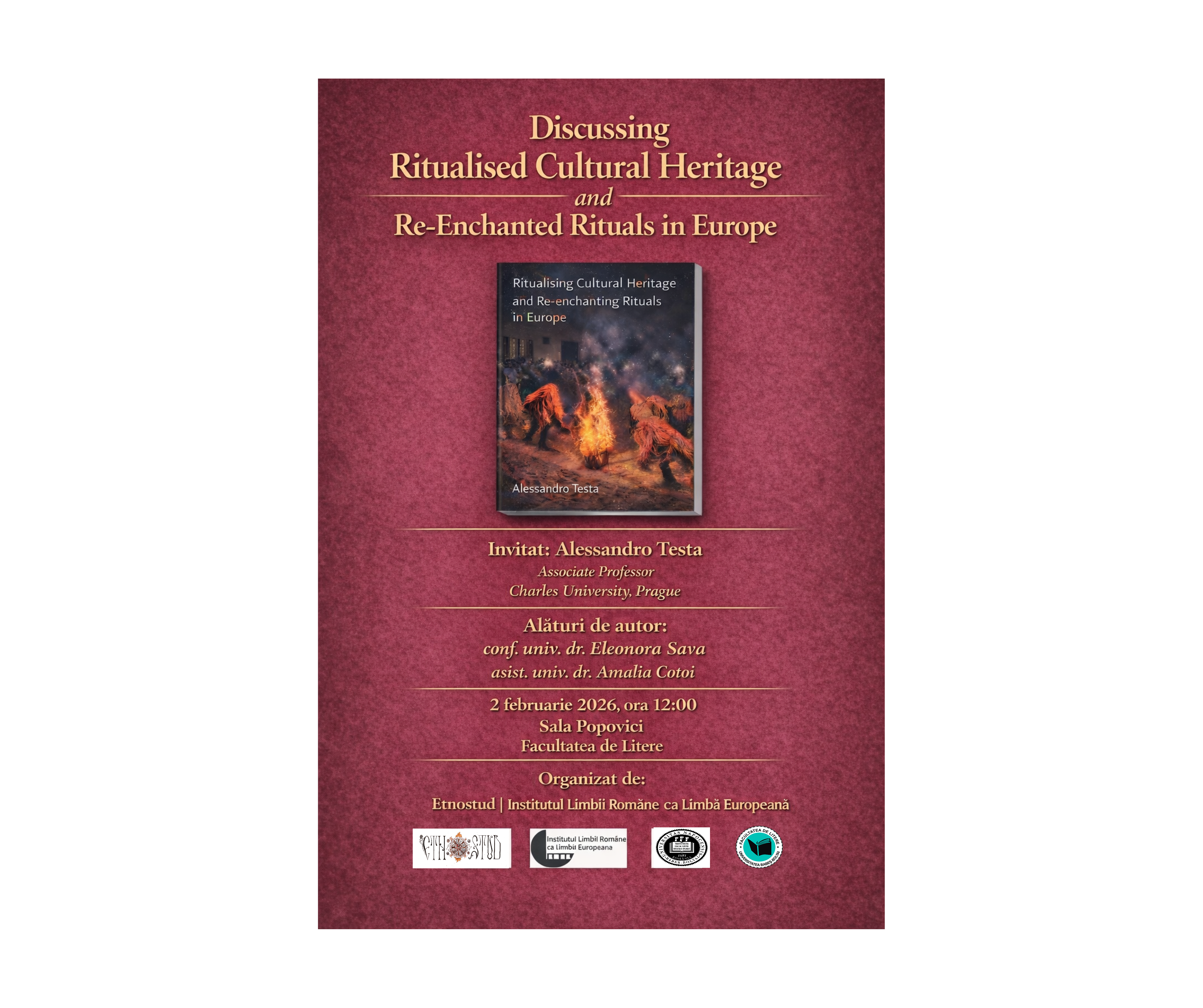 Facultatea de Litere din cadrul Universității Babeș-Bolyai prin Cercul Etnostud și Institutul Limbii Române ca Limbă Europeană vă invită la lansarea cărții – Ritualising Cultural Heritage and Re-Enchanting Rituals in Europe, autor Alessandro Testa, Charles University, Praga.