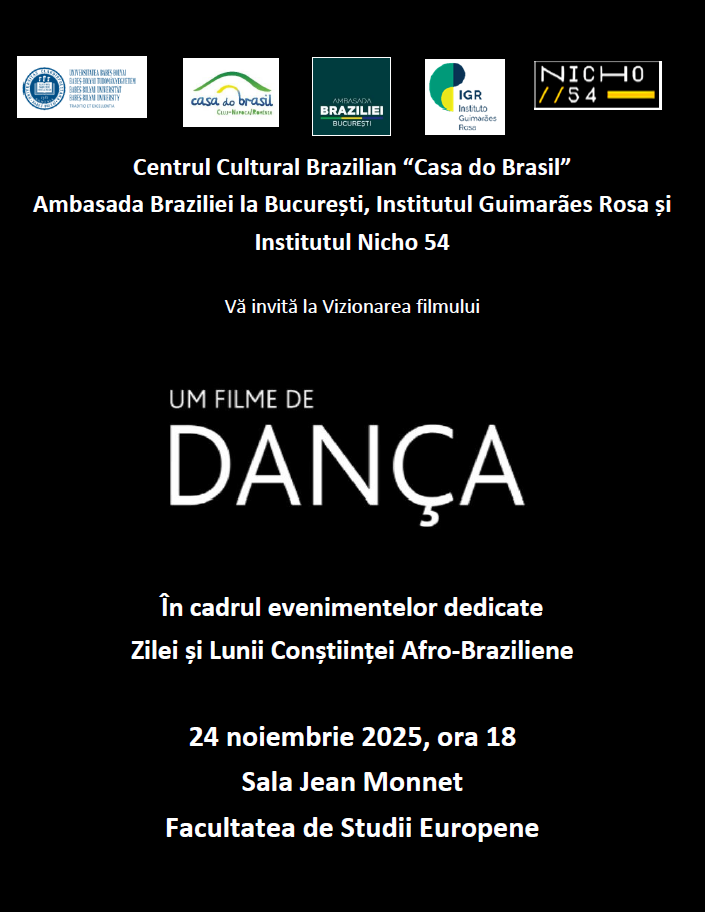 Centrul Cultural Brazilian din cadrul Universității Babeș-Bolyai împreună cu Ambasada Braziliei la Bucuresti, Institutul Guimarães Rosa și Institutul Nicho 54 vă invită la vizionarea filmului – Um Filme de Dança.