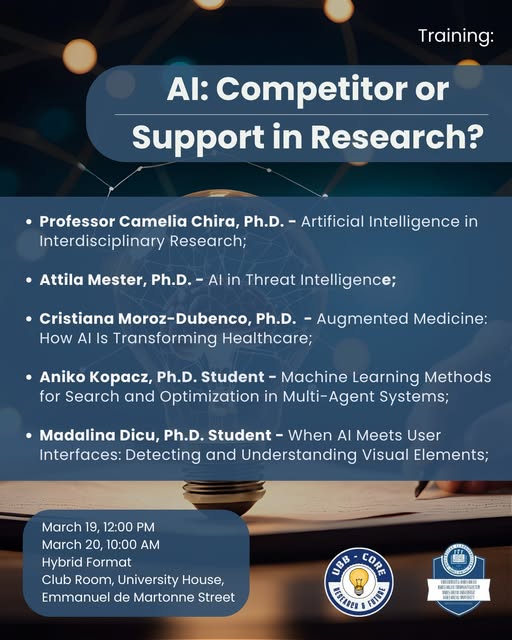 hibridBabeș-Bolyai University through the North-West Regional Center for Career Guidance of Researchers, UBB-CORE, invites PhD students, teaching staff, and researchers to a training event where experts will explore the evolving role of AI in research across multiple disciplines - from …