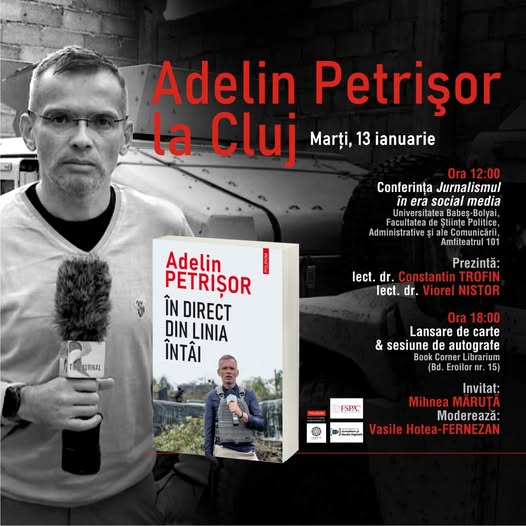 Facultatea de Științe Politice, Administrative și ale Comunicării, sala101 Str. Traian Moșoiu nr. 71, Cluj-NapocaFacultatea de Ştiinţe Politice, Administrative şi ale Comunicării prin Departamentul de Jurnalism și Media digitală vă invită la o întâlnire cu jurnalistul de război Adelin Petrișor. Adelin Petrișor va vorbi despre - Jurnalismul în era social media și despre noua …
