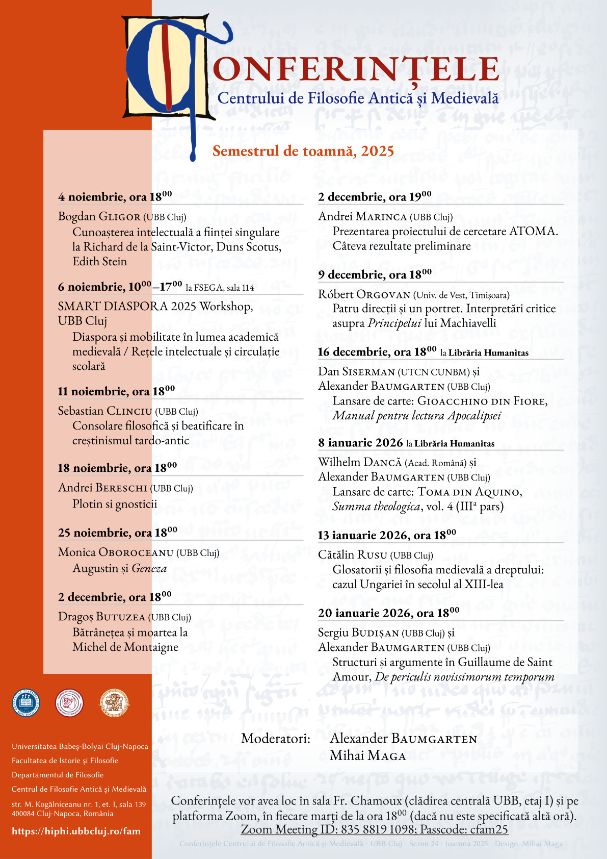 Facultatea de Istorie și Filosofie, sala Fr. Chamoux și platforma Zoom str. M. Kogălniceanu nr. 1, Cluj-NapocaFacultatea de Istorie și Filosofie vă invită la prelegerea susținută de Dl. Bogdan Gligor, Universitatea Babeș-Bolyai Cluj-Napoca. Evenimentul face parte din seria de conferinţe care ilustrează viaţa ştiinţifică din cadrul Centrului de Filosofie Antică şi Medievală al UBB.