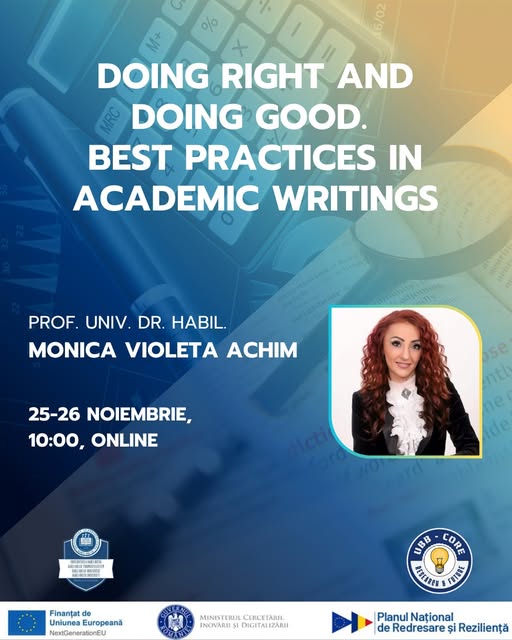 OnlineUniversitatea Babeș-Bolyai din Cluj-Napoca prin Centrul Regional Nord-Vest de Orientare în Carieră al Cercetătorilor, UBB-CORE vă invită la workshopul - Doing Right and Doing Good. Best Practices in Academic Writings, susținut de Dna. prof. univ. dr. habil. Monica Violeta Achim.
