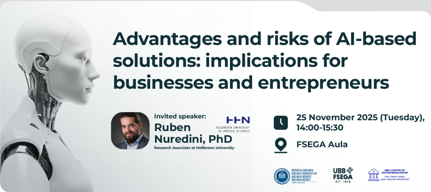 Facultatea de Științe Economice și Gestiunea Afacerilor, Aula Str. Teodor Mihali nr. 58-60, Cluj-NapocaFacultatea de Științe Economice și Gestiunea Afacerilor în colaborare cu Centrul de Antreprenoriat al UBB vă invită la prelegerea susținută de Dl. dr. Ruben Nuredini, cercetător și lector universitar, Universitatea Heilbronn din Germania. Prelegerea va aborda teme precum stadiul actual …