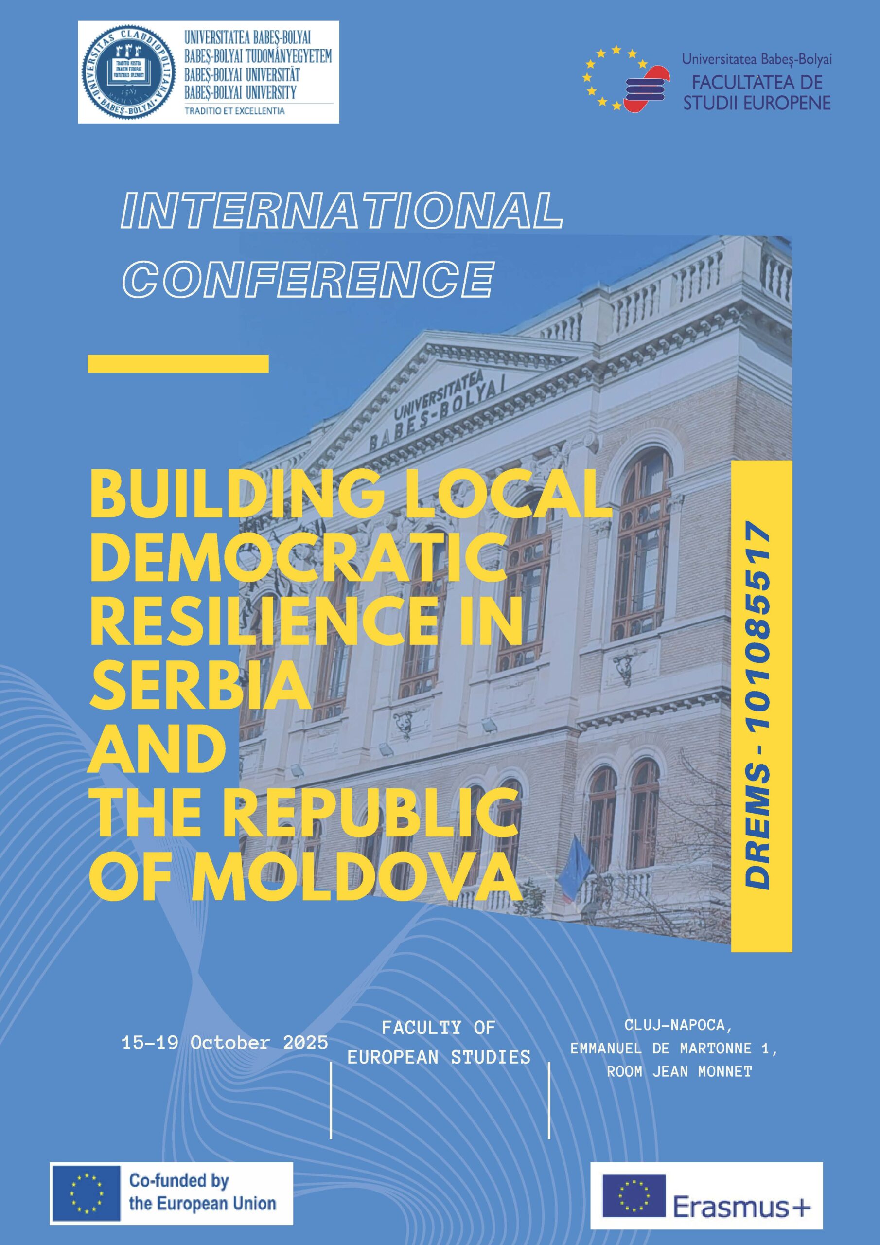 Facultatea de Studii Europene, sala J. Monnet str. Emmanuel de Martonne, nr. 1, Cluj-NapocaFacultatea de Studii Europene din cadrul Universității Babeș-Bolyai vă invită la conferința internațională - Building local democratic resilience in Serbia and the Republic of Moldova.