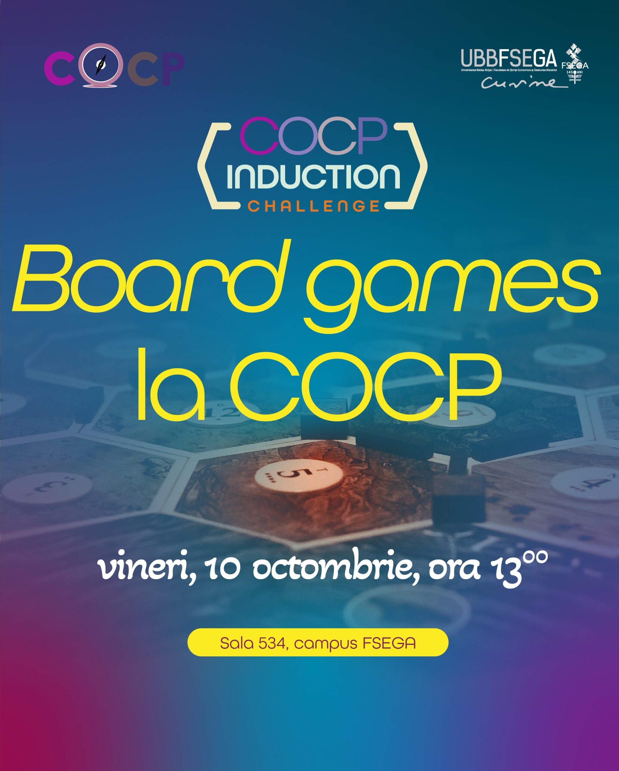 Facultatea de Științe Economice și Gestiunea Afacerilor, sala 534 Str. Teodor Mihali nr. 58-60, Cluj-NapocaFacultatea de Științe Economice și Gestiunea Afacerilor prin Centrul de Orientare și Consiliere Profesională își invită studenții la o sesiune de jocuri de societate - Board games la COCP. Participarea necesită înscriere prealabilă.