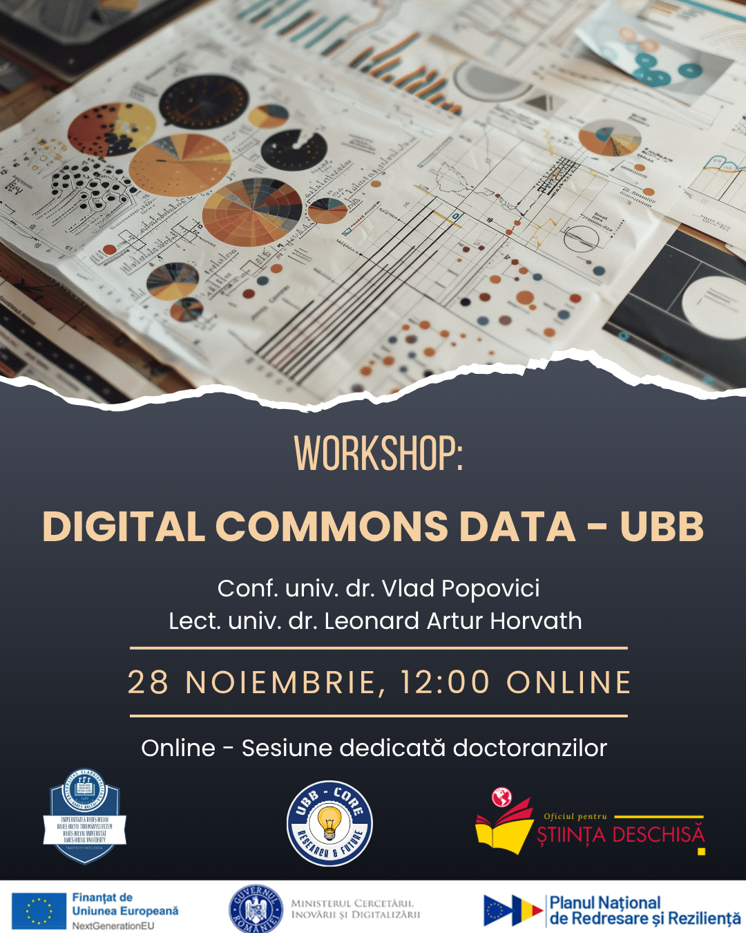 Online - Platforma Microsoft TeamsUniversitatea Babeș-Bolyai prin Centrul Regional Nord-Vest de Orientare în Carieră al Cercetătorilor, UBB-CORE și Oficiul pentru Știința Deschisă al UBB vă invită la workshopul – Digital Commons Data – UBB, susținut de Dl. conf. univ. dr. Vlad Popovici și Dl. …